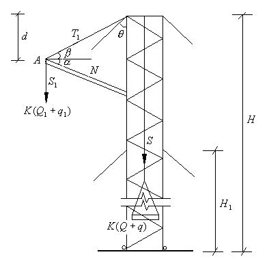 T1 ── 变幅滑轮组缆风绳的张力,经计算得到为17.75kN。