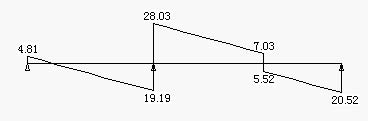 经过计算得到由上到下各缆风绳与井架接点处截面的弯矩分别为